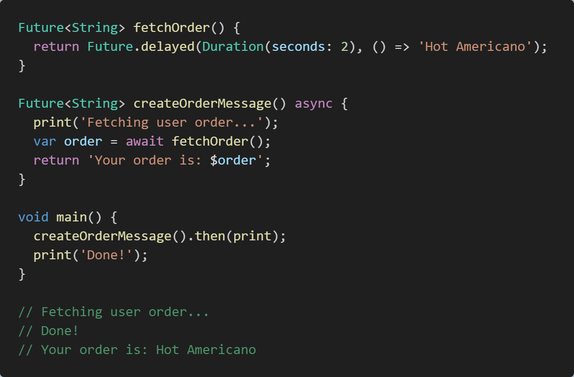 이 경우, order는 String 값이 아닌 Future<String> 객체가 된다.